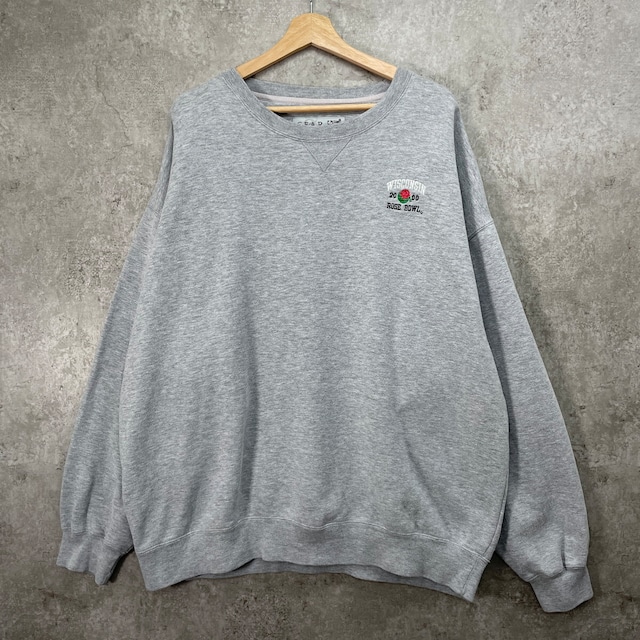 00年代 WISCONSIN ROSE BOWL ワンポイントロゴ刺繍 スウェットシャツ メンズ2XL 古着 00s Y2K VINTAGE ヴィンテージ アメカジ ウィスコンシン ローズボウル トレーナー ビッグサイズ 大きいサイズ 灰色【スウェット】/グレー