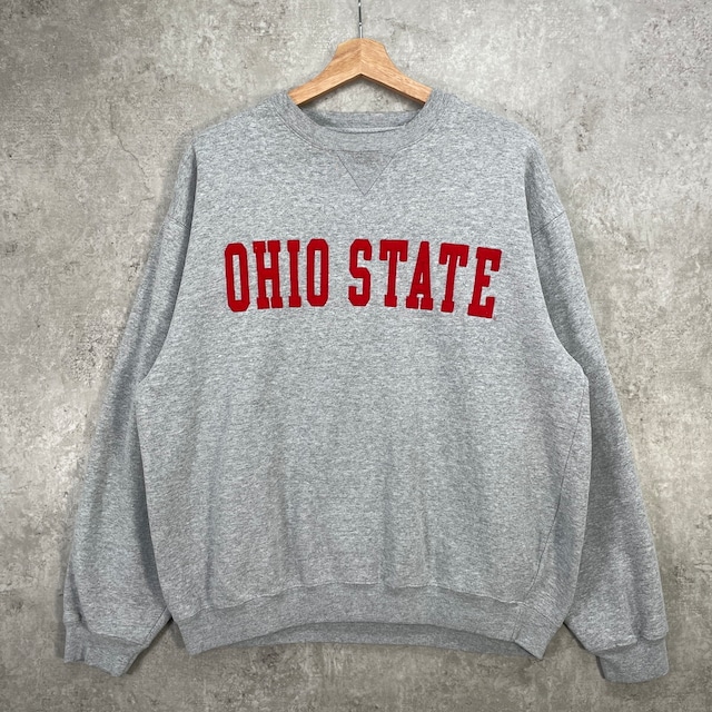 OHIO STATE カレッジロゴ刺繍 スウェットシャツ メンズM 古着 アメカジ オハイオ州 トレーナー 灰色【スウェット】/グレー