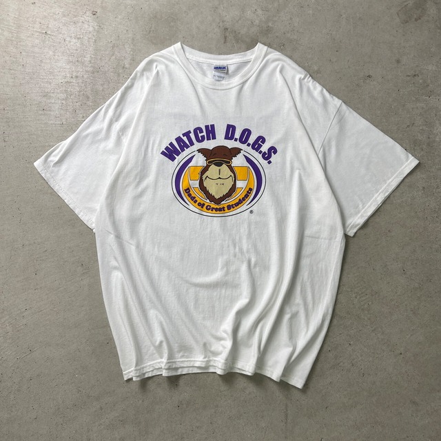 GILDAN WATCH D.O.G.S. 両面キャラクタープリントTシャツ クルーネックTシャツ メンズ2XL相当 古着 ドッグ コミュニティTシャツ パープル イエロー 白色 紫色 黄色【Tシャツ】/ホワイト【SS2408-50a】【BS25-50】