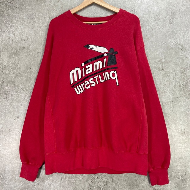 90年代 USA製 Lee リー MIAMI WRESTLING スウェットシャツ リバースウィーブタイプ メンズXL 古着 90s VINTAGE ヴィンテージ マイアミ レスリング スポーツ 赤色【スウェットシャツ】/レッド