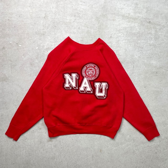 60~70年代 USA製 Champion チャンピオン プロダクツタグ 染み込み カレッジプリント スウェットシャツ メンズXS相当 レディースS相当 古着 60s 70s VINTAGE ヴィンテージ アメカジ ヴィンスウェ ビンスウェ ラグランスリーブ 北アリゾナ大学 NAU 赤色【スウェット】/レッド