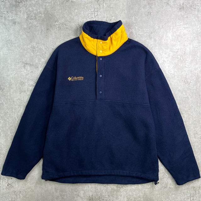 90年代 USA製 Columbia コロンビア スナップTタイプ フリースジャケット メンズL 古着 90s VINTAGE ヴィンテージ イエロー 紺色 黄色【アウトドアジャケット】/ネイビー