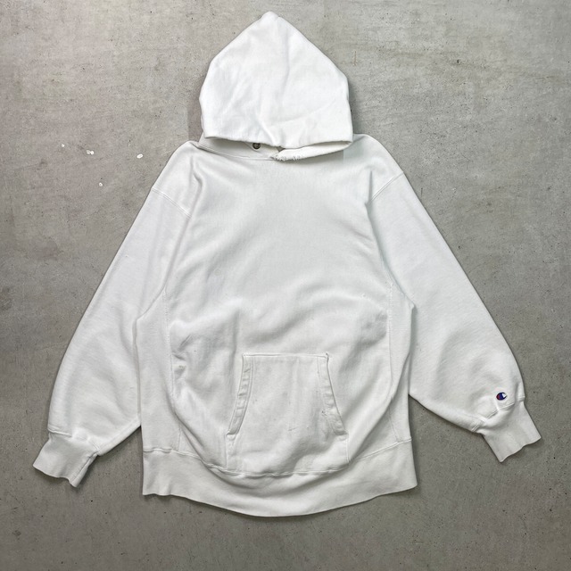 80年代 USA製 Champion チャンピオン REVERSE WEAVE リバースウィーブ 目無し 雰囲気系 スウェットパーカー メンズL相当 古着 80s VINTAGE ヴィンテージ アメカジ トリコタグ トレーナー 白色【スウェット】/ホワイト
