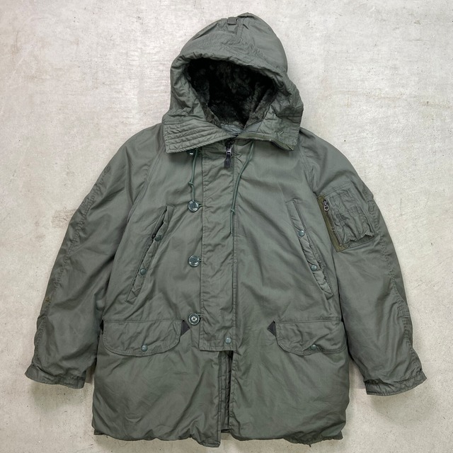 ■古着 USAF U.S.AIR FORCE 米軍実品 N-3B ミリタリー フライトジャケット メンズL相当 78年納品 70s VINTAGE ヴィンテージ USED SCOVILLジップ ライトカーキグリーン【ミリタリージャケット】/カーキグリーン ◎70年代USAF、N-3Bフライトジャケット。 中綿入り、フード部分のボアとファーでミリタリージャケットの中でも特に防寒性抜群なアイテム。 ボリュームのある独特なシルエットが特徴的でバイクウェアなどにも最適です。 【サイズ】表記 MEDIUM(実寸メンズL相当) モデル身長172cm 計測値をご確認ください。 着丈…82 身幅…68.5 裄丈…79.5 袖下…45.5 【素材】表地 コットン80%,ナイロン20% 中綿 ポリエステル100% 【状態】袖やフードトップ付近に薄汚れがございます。 画像にてご確認ください。 【c251215103】 ※古着は洗濯、検品などのケアを行っております。(新品・デッドストックは洗濯していません。) ※モニターの発色により実物と異なる場合がございます。予めご了承ください。 ※ 海外直輸入USED品になります。