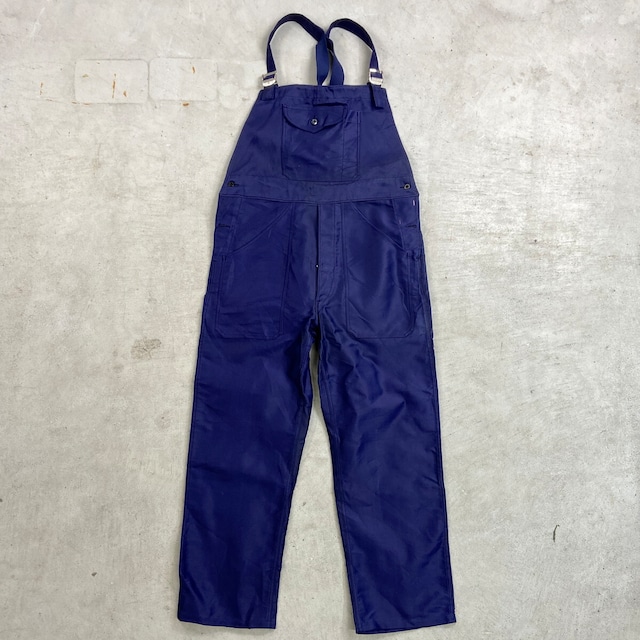 40年代 La Fourmi 黒ラッカードーナツボタン ブルーモールスキン フレンチワーク オーバーオール メンズW41相当 古着 40s VINTAGE ヴィンテージ ユーロワーク ビッグサイズ 大きいサイズ インクブルー【オーバーオール】/ブルー