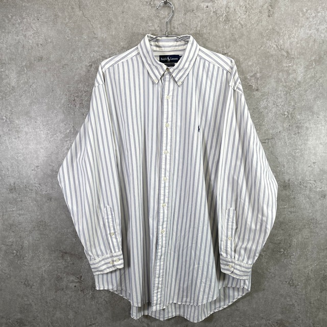 Ralph Lauren ラルフローレン YARMOUTH ワンポイントロゴ刺繡 ストライプシャツ メンズ2XL相当 古着 ヴィンテージ VINTAGE ボタンダウンシャツ ビッグサイズ 大きいサイズ ホワイト ブルー【長袖シャツ】/マルチカラー