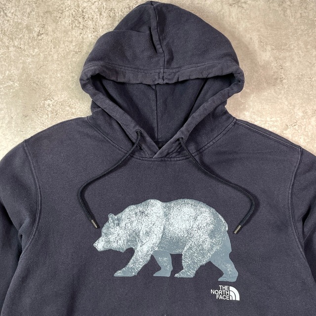 THE NORTH FACE ザ ノースフェイス アニマルプリント プルオーバー スウェットパーカー メンズL相当 古着 熊 ベアー 紺色【パーカー】/ネイビー