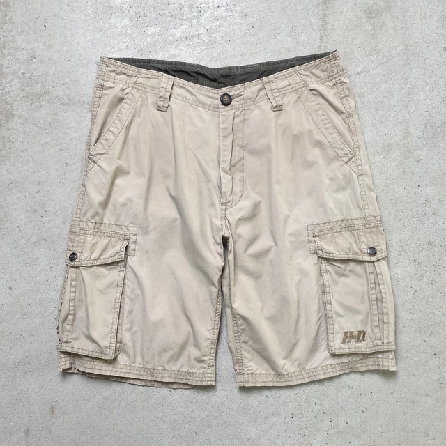 Harley-Davidson ハーレーダビッドソン カーゴショーツ メンズW32 古着 リップストップコットン カーゴショートパンツ 白【ショートパンツ】/ベージュ【SS26-50】