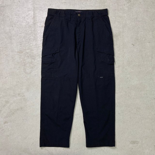 TRU-SPEC リップストップ ダブルニー ミリタリー カーゴパンツ メンズW36 古着 黒【ロングパンツ】/ブラック【BS25-50】