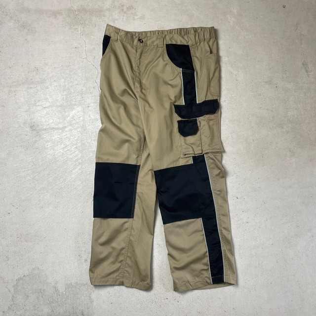 UNKNOWN ユーロワーク ダブルニーワークパンツ サイドライン メンズW38相当 古着 サイドライン リフレクター サイドポケット ベージュ ブラック 黒【ワークパンツ】/ベージュ【WS2501-30P】