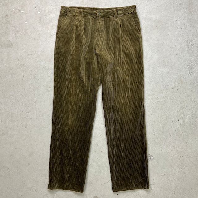 BRICE Week End ユーロ ワイドテーパード 太畝 コーデュロイパンツ メンズW35相当 古着 裾ダブル オリーブ【コーデュロイパンツ】/カーキグリーン