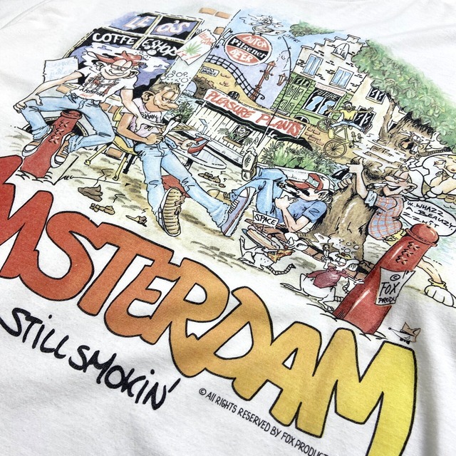 90年代 FOX TEES AMSTERDAM ジョークプリントTシャツ アート 大麻 ウィード メンズXL 古着 90s ヴィンテージ VINTAGE メッセージ シングルステッチ 白【Tシャツ】/ホワイト【SS30】【SS26-20】