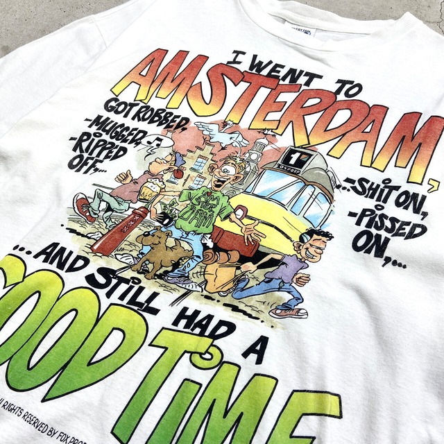 90年代 FOX TEES AMSTERDAM ジョークプリントTシャツ アート メンズL相当 古着 90s ヴィンテージ VINTAGE メッセージ シングルステッチ 白【Tシャツ】/ホワイト【SS50】【SS26-30】