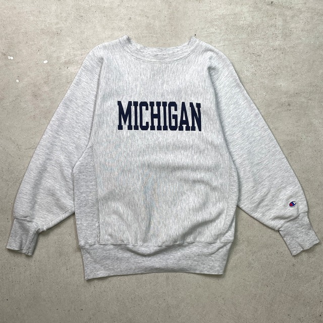 90年代 USA製 Champion チャンピオン REVERSE WEAVE リバースウィーブ MICHIGAN カレッジプリント スウェットシャツ メンズM 古着 90s VINTAGE ヴィンテージ アメカジ スウェット トレーナー ミシガン大学 霜降りグレー 杢グレー【スウェット】/グレー