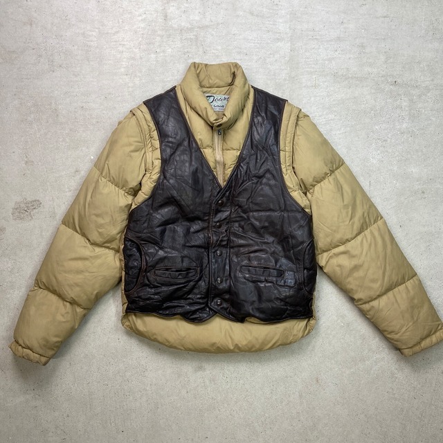 80年代 USA製 Schott ショット 2WAY レザーグースダウンジャケット メンズM相当 古着 80s VINTAGE ヴィンテージ ダウンベスト【ブルゾン・ジャケット】/ベージュ