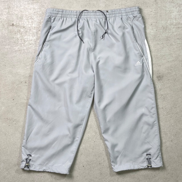00年代 adidas アディダス クロップドトラックパンツ 七分丈 ポリエステル メンズXL 古着 00s VINTAGE ヴィンテージ Y2K パフォーマンスロゴ ナイロンパンツ ジョグパンツ ライトグレー 灰色【ジャージ,ナイロンパンツ】/グレー