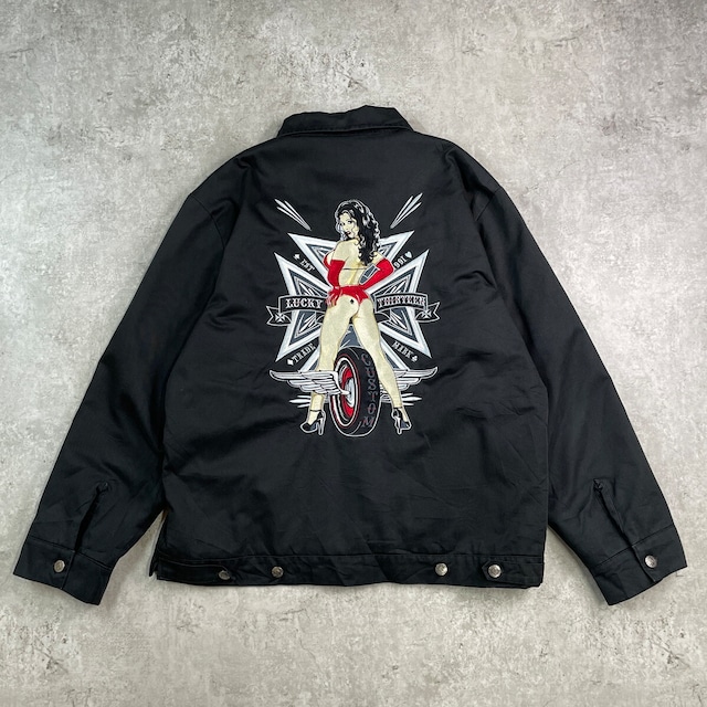 90~00年代 LUCKY-13 ワークジャケット キルティングライナー メンズXL 古着 90s 00s Y2K VINTAGE ヴィンテージ スカル スペード刻印ボタン ロゴ刺繍 黒色【ワークジャケット】/ブラック