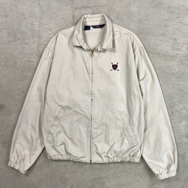 90年代 USA製 Polo by Ralph Lauren ポロバイラルフローレン スイングトップ メンズL相当 古着 90s ヴィンテージ VINTAGE アメカジ 三角タグ チンスト付き ワンポイントロゴ刺繍 ゴルフ スポーツジャケット ライトベージュ【ブルゾン・ジャケット】/ベージュ