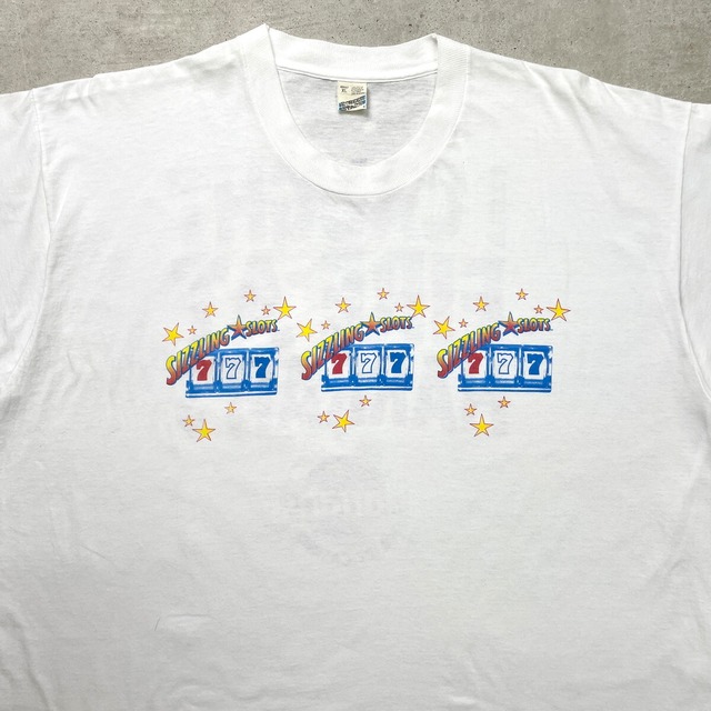 80〜90年代 Harrah's ハラーズ 企業ロゴ プリントTシャツ メンズXL 古着 80s 90s ヴィンテージ VINTAGE シングルステッチ アドバタイジング 両面プリント SIZZLINGSLOTS 777 カジノ スロット 白【Tシャツ】/ホワイト【SS50】