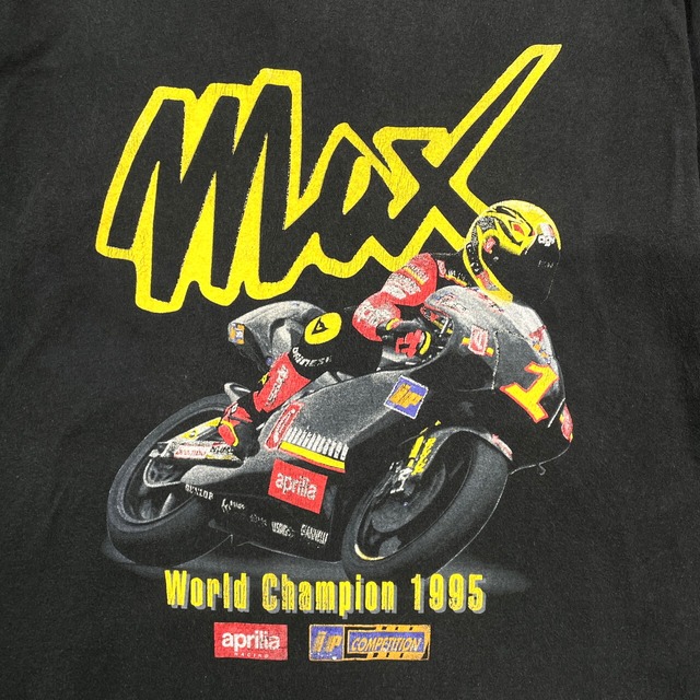 90年代 Max Biaggi モーターサイクル レーシング プリントTシャツ バイク メンズL相当 古着 90s ヴィンテージ VINTAGE シングルステッチ 黒色【Tシャツ】/ブラック【SS20】