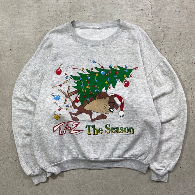 90年代 Looney Tunes ルーニー テューンズ タズマニアンデビル スウェットシャツ メンズM相当 レディース 古着 90s キャラクター ヴィンテージ VINTAGE トレーナー キャラクター クリスマス WARNER BROS 灰色【スウェット】/グレー【SS50-AW】