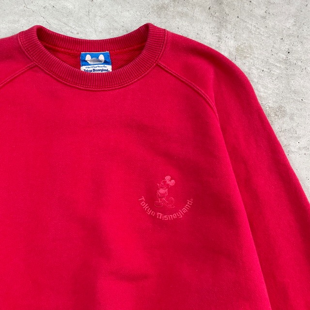 80年代 日本製 Tokyo Disneyland 東京ディズニーランド スウェットシャツ ミッキーマウス メンズM相当 レディース 古着 80s ヴィンテージ VINTAGE ラグラン 赤色【スウェット】/レッドSS30