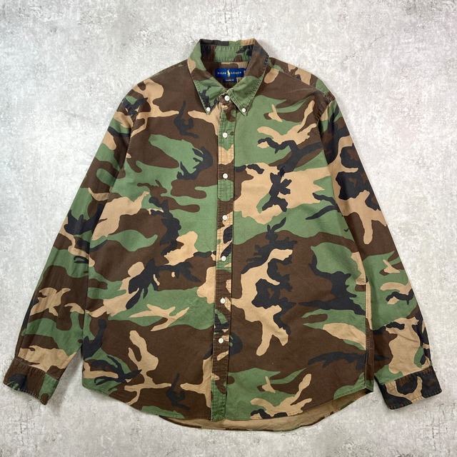 Ralph Lauren ラルフローレン CLASSIC FIT ダックハンターカモ柄シャツ メンズXL 古着 ボタンダウンシャツ B.D 迷彩柄 カモフラージュ コットンシャツ グリーン ブラウン ベージュ ブラック【長袖シャツ】/マルチカラー