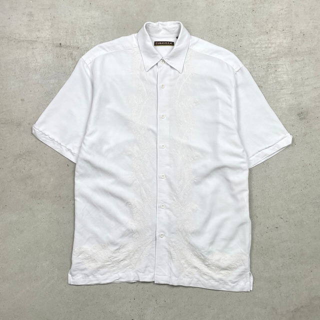 00年代 CUBAVERA メキシカンシャツ 刺繍 レーヨン メンズM 古着 00s Y2K 半袖シャツ 白【半袖シャツ】/ホワイト【SA2501-50】