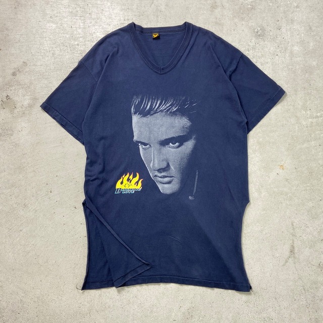 90年代 ELVIS PRESLEY エルヴィス・プレスリー アーティストTシャツ Tワンピ ビッグサイズ Vネック メンズ レディース 古着 90s 1991 シングルステッチ ヴィンテージ VINTAGE 紺色【Tシャツ】/ネイビー【SS26-50】