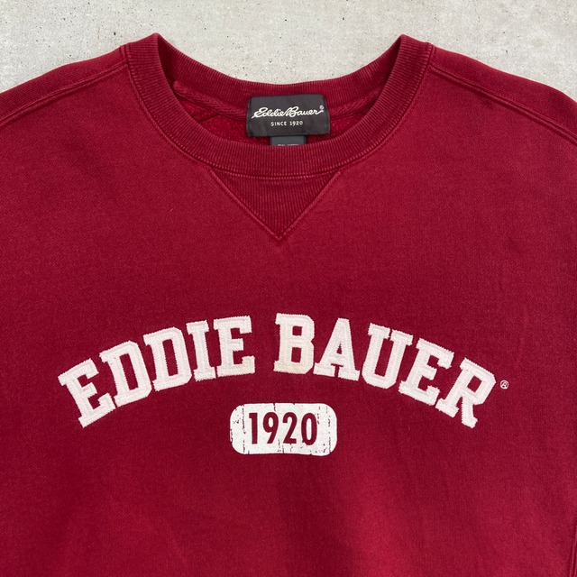 Eddie Bauer エディーバウアー スウェットシャツ ロゴワッペン プリント メンズS 古着 アメカジ 前Vガゼット アウトドア 裏起毛 ブランドロゴ ボルドー えんじ 【スウェット】/ワインレッド【SS26-40b】