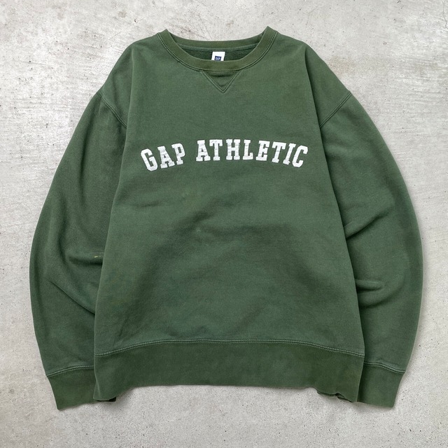 GAP ATHLETIC ギャップ ロゴ刺繍 スウェットシャツ メンズM 古着 アメカジ 前Vガゼット フォレストグリーン 緑色【スウェット】/グリーン【SS26-50】