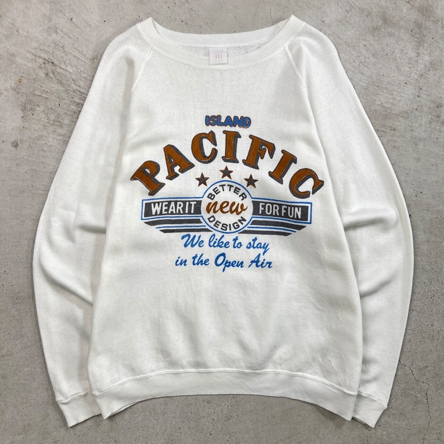 80年代~フランス製 ISLAND PACIFIC プリント ラグランスリーブ スウェットシャツ メンズL 古着 80s VINTAGE ヴィンテージ アメカジ スーベニア 白色【スウェット】/ホワイト【SS26-50】