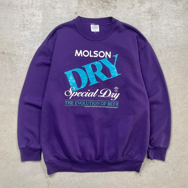 90年代 カナダ製 MOLSON DRY モルソンカナダビール 企業ロゴ プリントスウェットシャツ メンズL 古着 アメカジ 90s ヴィンテージ VINTAGE トレーナー 紫【スウェット】/パープル【SS26-50】