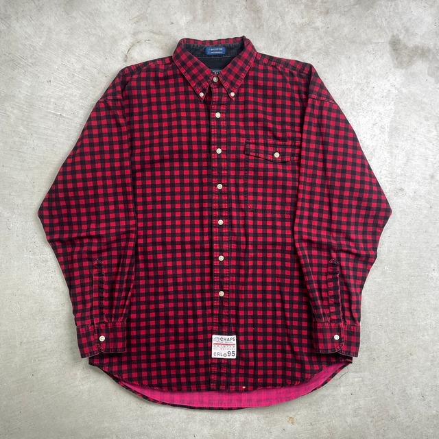 80年代 CHAPS Ralph Lauren チャップス ラルフローレン チェックシャツ ボタンダウンシャツ メンズL 古着 80s VINTAGE ヴィンテージ 【長袖シャツ】/レッド【SS26-50】
