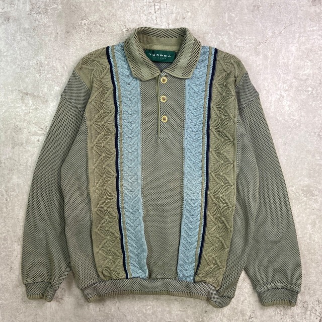 90年代 TUNDRA クージー風 3Dニット コットンニットポロシャツ メンズL 古着 90s ヴィンテージ VINTAGE 【ニットセーター】/マルチカラー【SS26-20b】