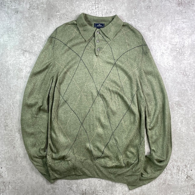 00年代 DOCKERS ドッカーズ アーガイルチェック アクリルニットポロシャツ メンズL 古着 00s VINTAGE ヴィンテージ 襟付き 抹茶グリーン【ニットセーター】/グリーン【SS26-20b】