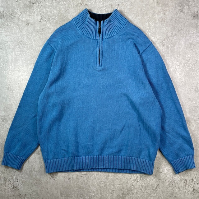 L.L.Bean エルエルビーン ハーフジップ コットンニットセーター メンズXL相当 古着 水色【ニットセーター】/ブルー【SS26-20b】