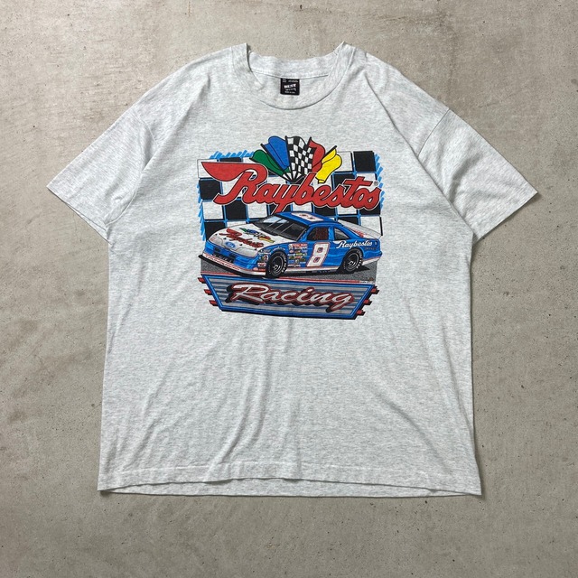 90年代 USA製 Raybestos モーターサイクル レーシングTシャツ メンズ2XL 古着 90s コピーライト シングルステッチ ヴィンテージ VINTAGE 両面プリント 【Tシャツ】/グレー【SS26-50】