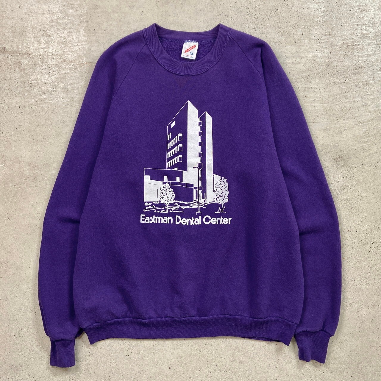 80年代 USA製 Eastman Dental Center 企業プリント ラグランスウェットシャツ メンズXL 古着 アメカジ 80s VINTAGE ヴィンテージ トレーナー 紫色【スウェット】/パープルSS30