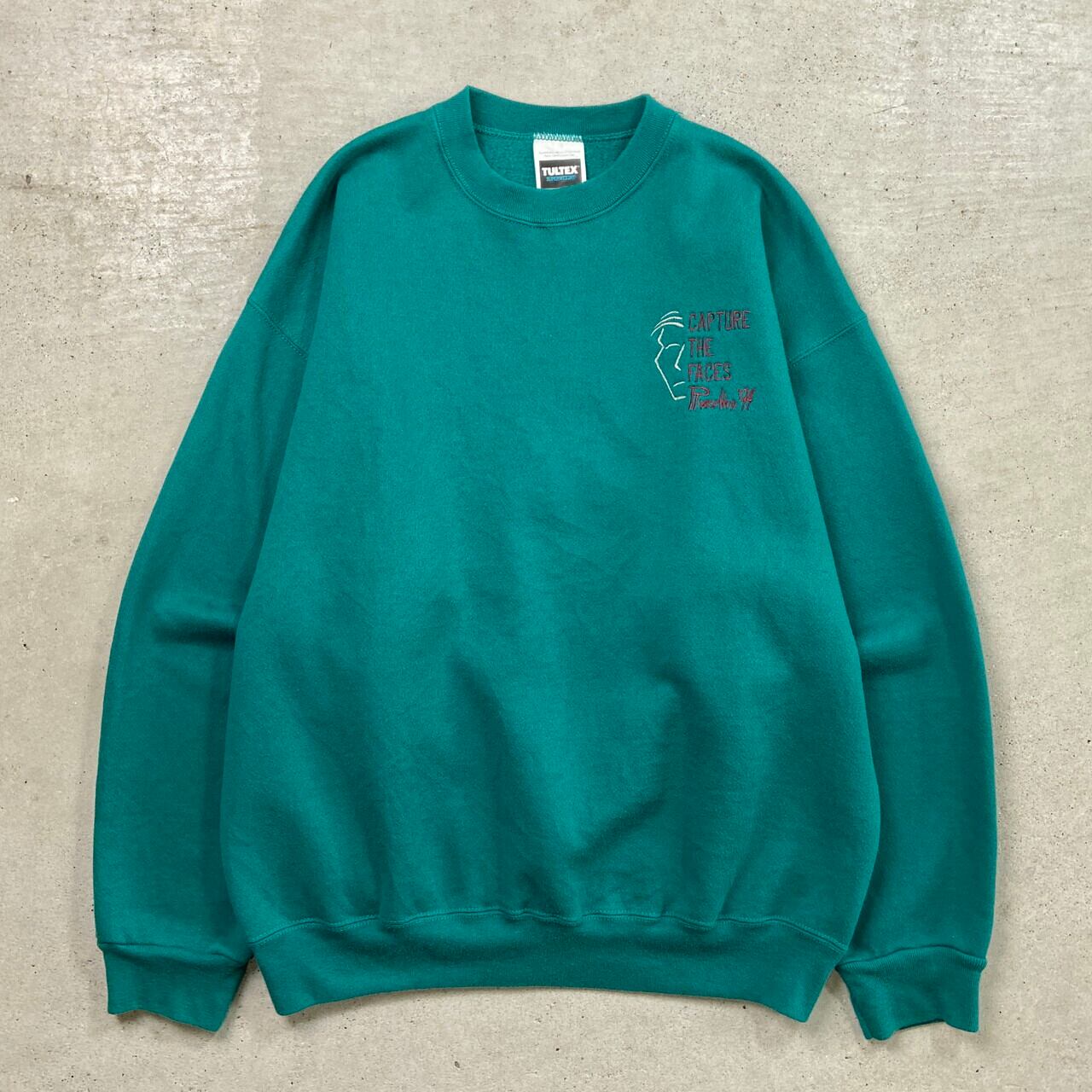 ■90年代 TULTEX タルテックス CAPTURE THE FACES ワンポイント刺繍 スウェットシャツ メンズXL 古着 アメカジ 90s VINTAGE ヴィンテージトレーナー 緑色【スウェット】/グリーン