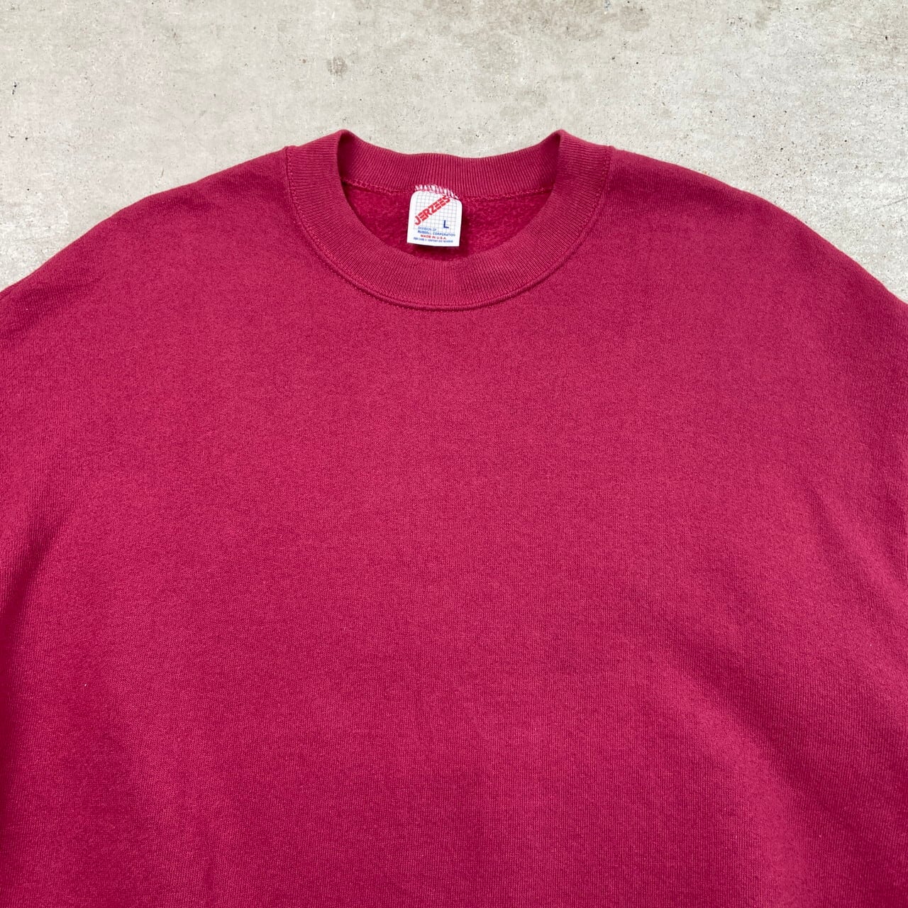 80年代 USA製 JERZEES ブランクスウェットシャツ 無地 メンズL 古着 80s ヴィンテージ VINTAGE トレーナー 赤紫色【スウェット】/ワインレッドSS30