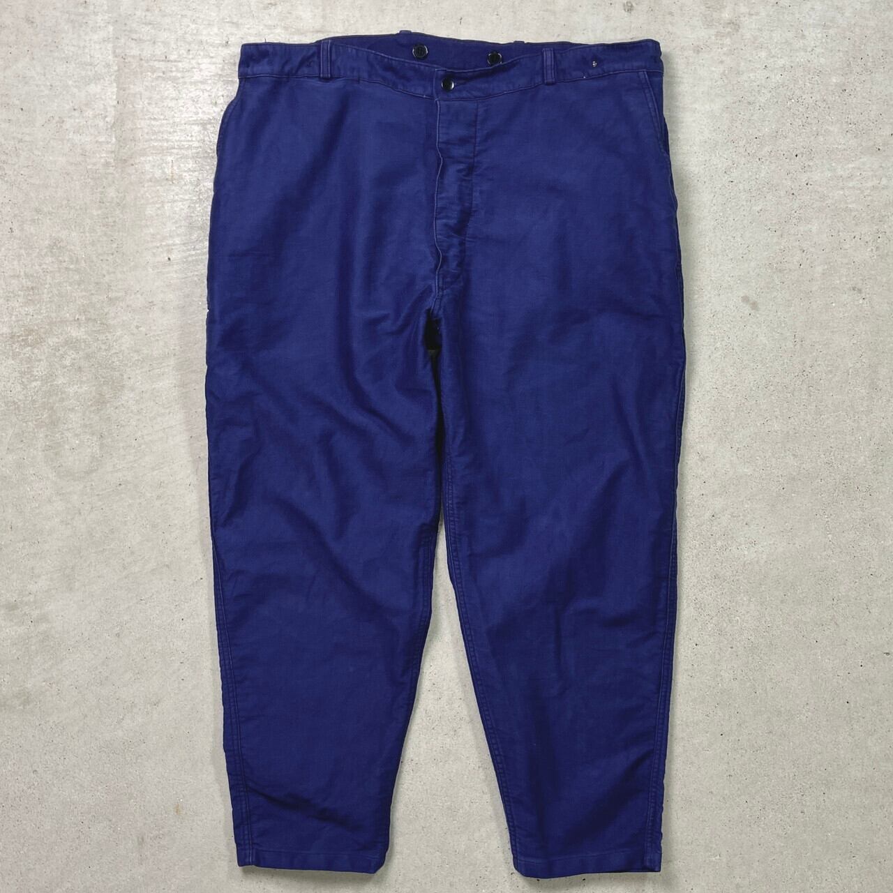 70年代頃 UNKNOWN ブルーモールスキンパンツ フレンチワークパンツ メンズW41 古着 70s VINTAGE ヴィンテージ ユーロワーク ネイビー ブルー 紺色 青色 ビッグサイズ 大きいサイズ【ワークパンツ】/ネイビー