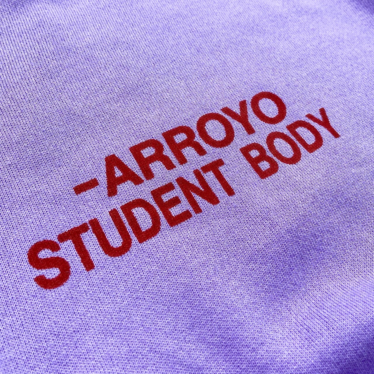 80年代 USA製 ARROYO HIGH SCHOOL ラグランスウェットシャツ メッセージ カレッジプリント メンズL相当 古着 80s ヴィンテージ VINTAGE トレーナー 両面プリント ラベンダー ペールパープル 薄紫色【スウェット】/パープルSS30
