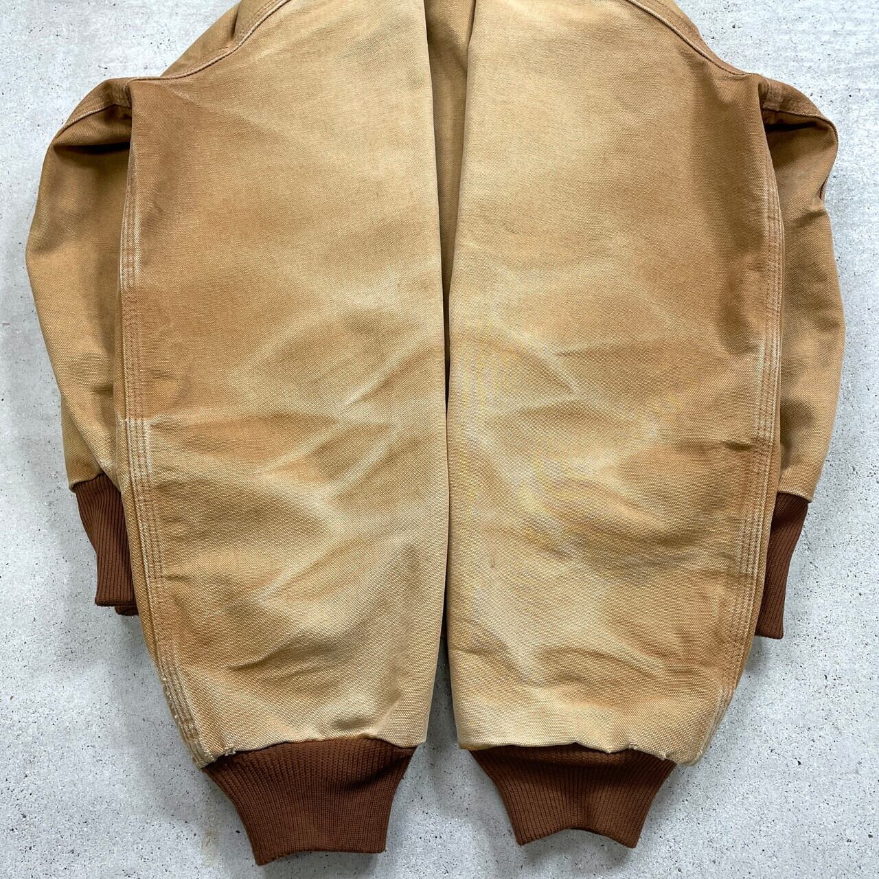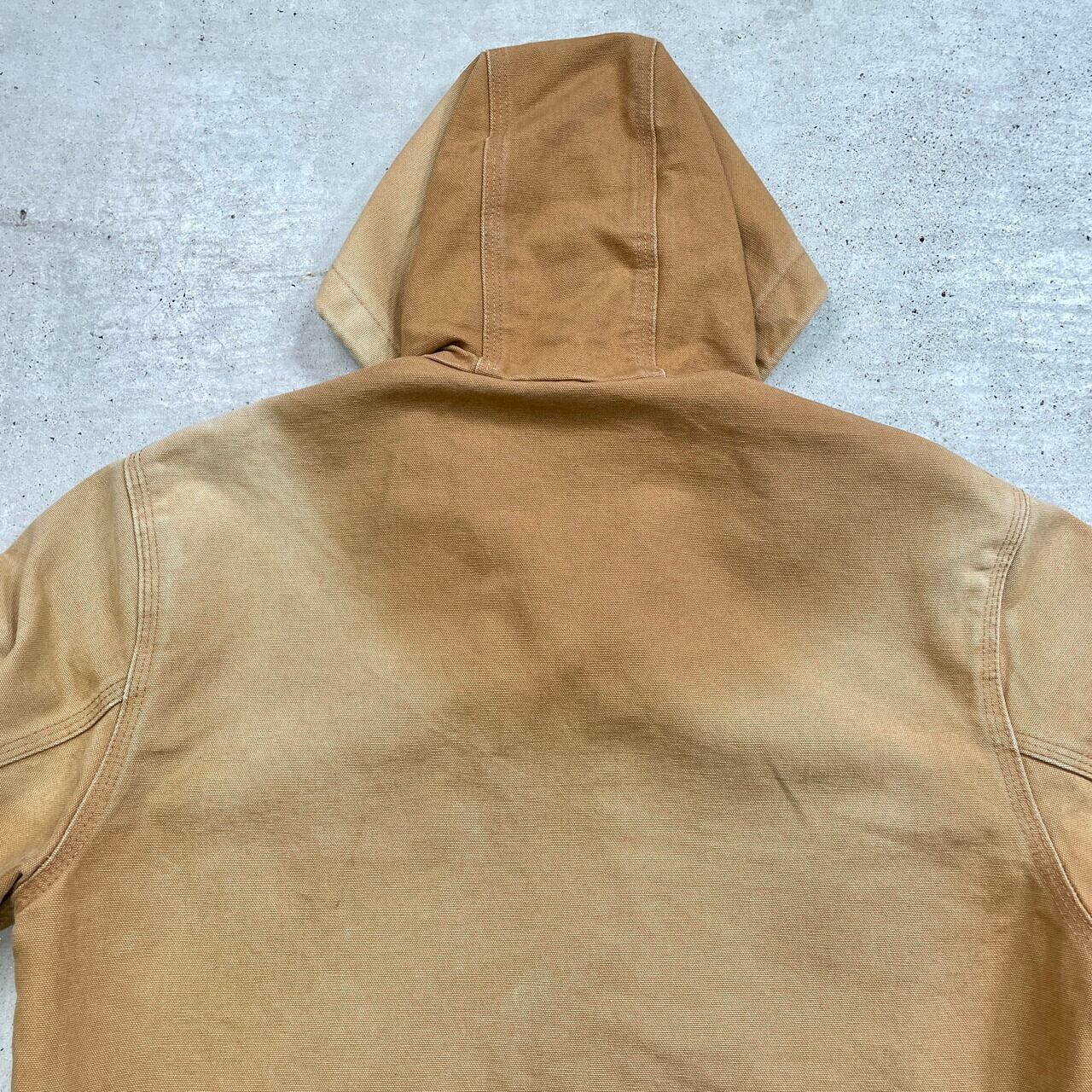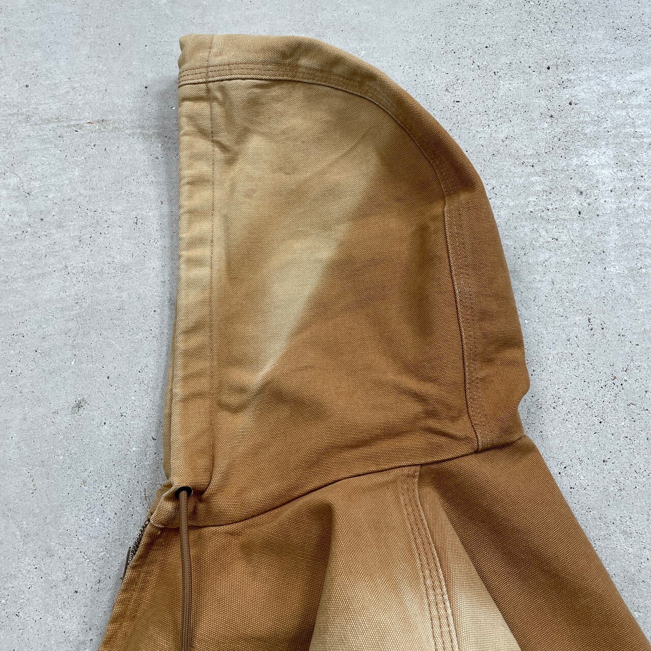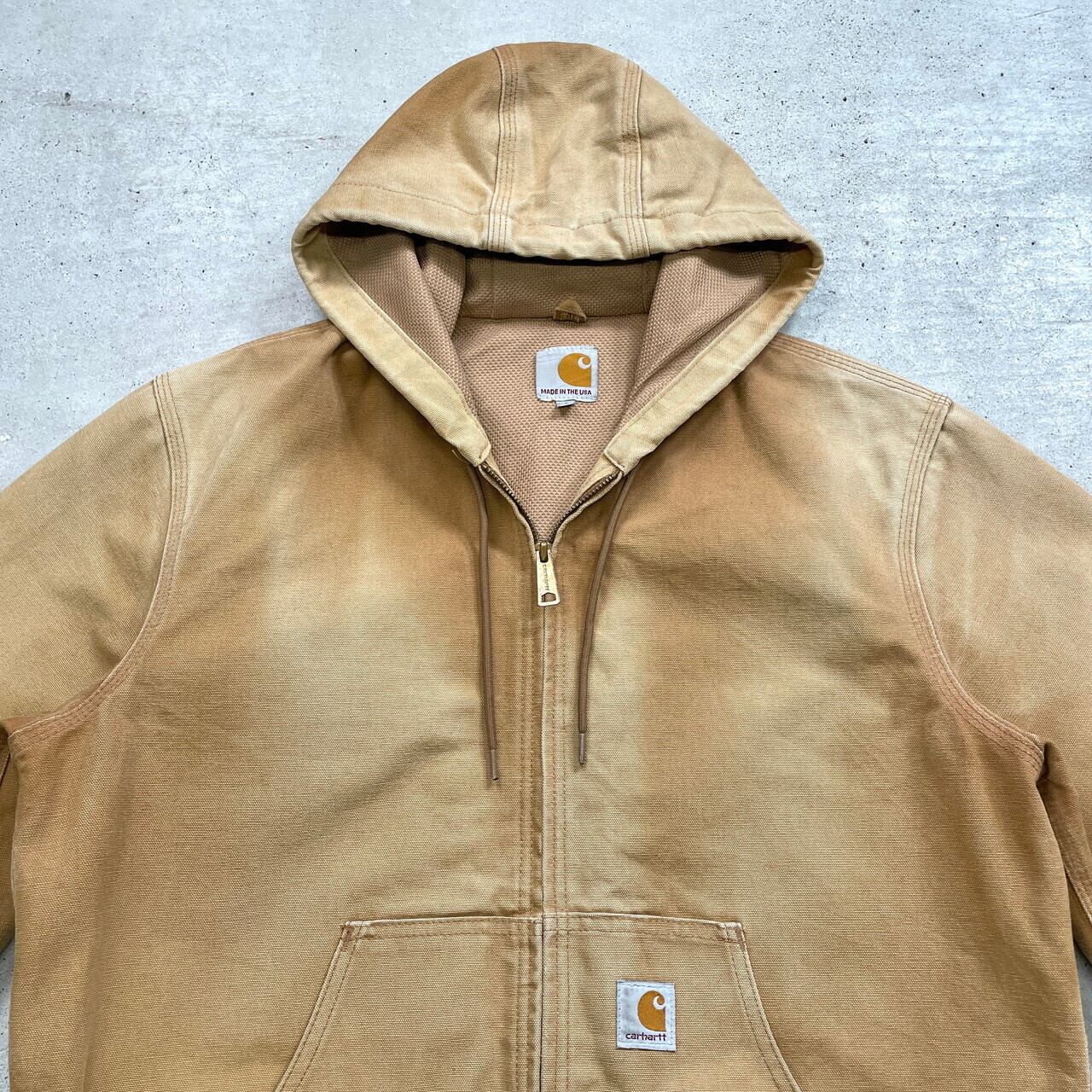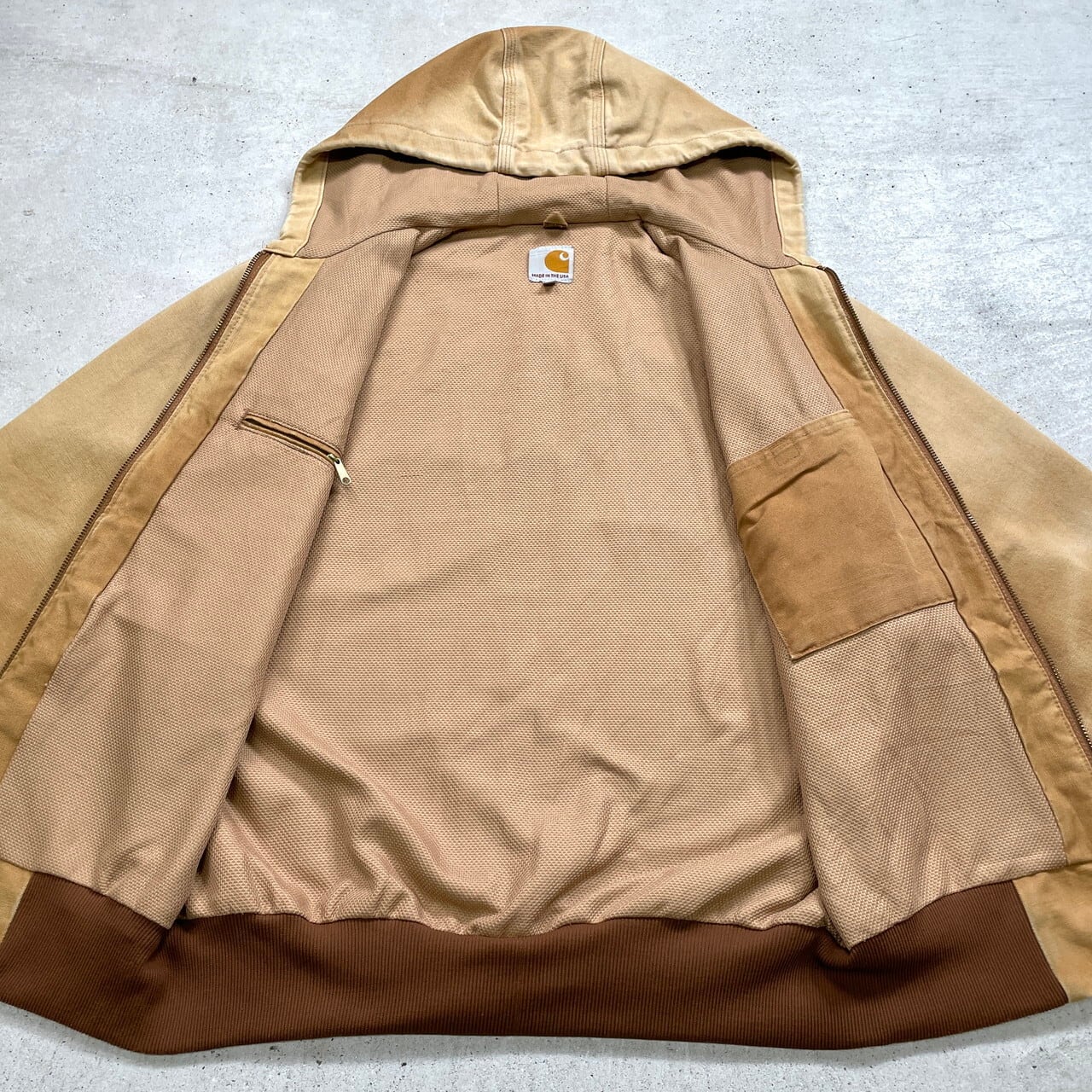 USA製 Carhartt カーハート アクティブジャケット ダックジャケット メンズM相当 古着 フルジップパーカー アクティブパーカー メッシュライナー フェード【ワークジャケット】/ベージュ