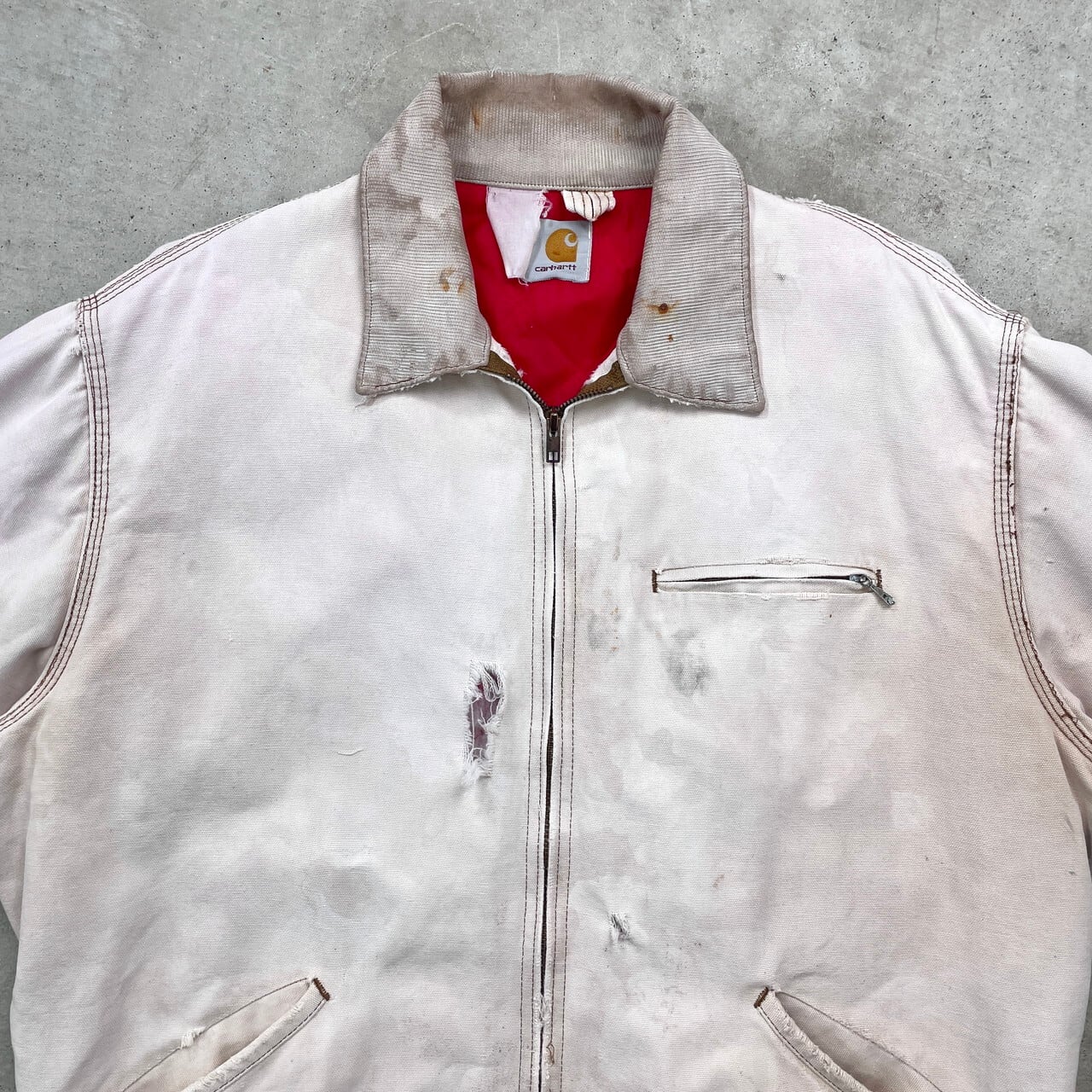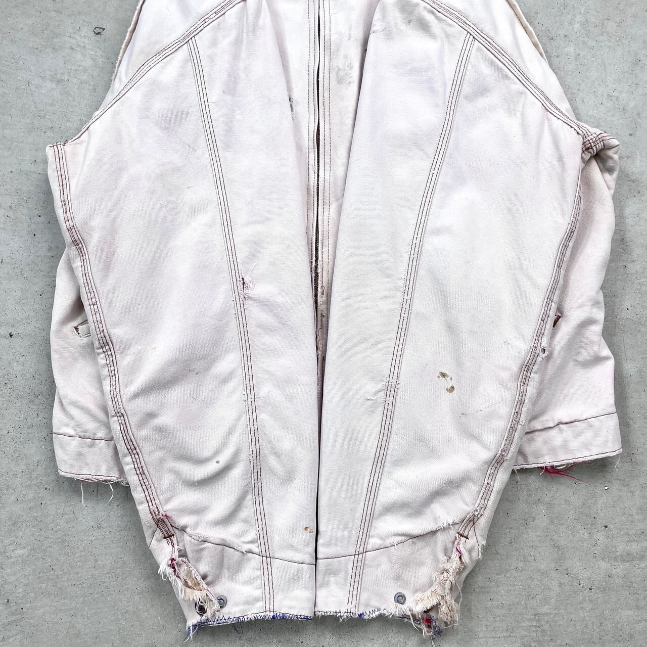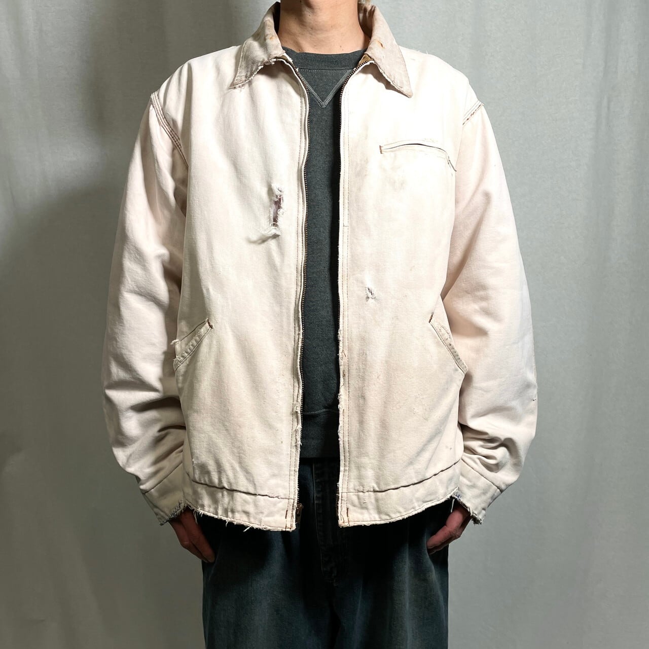 80年代 Carhartt カーハート デトロイトジャケット ダックジャケット メンズXL相当 古着 80s ヴィンテージ VINTAGE ブルゾン キルティングライナー フェード 雰囲気系 襤褸 ボロ フェードベージュ オフホワイト 【ワークジャケット】/ホワイト