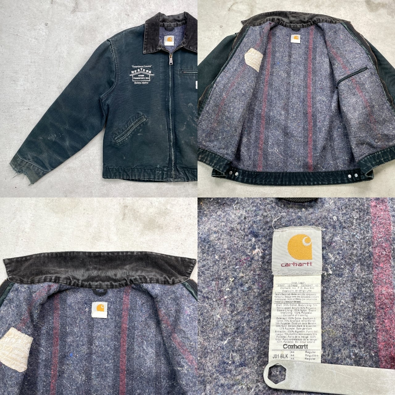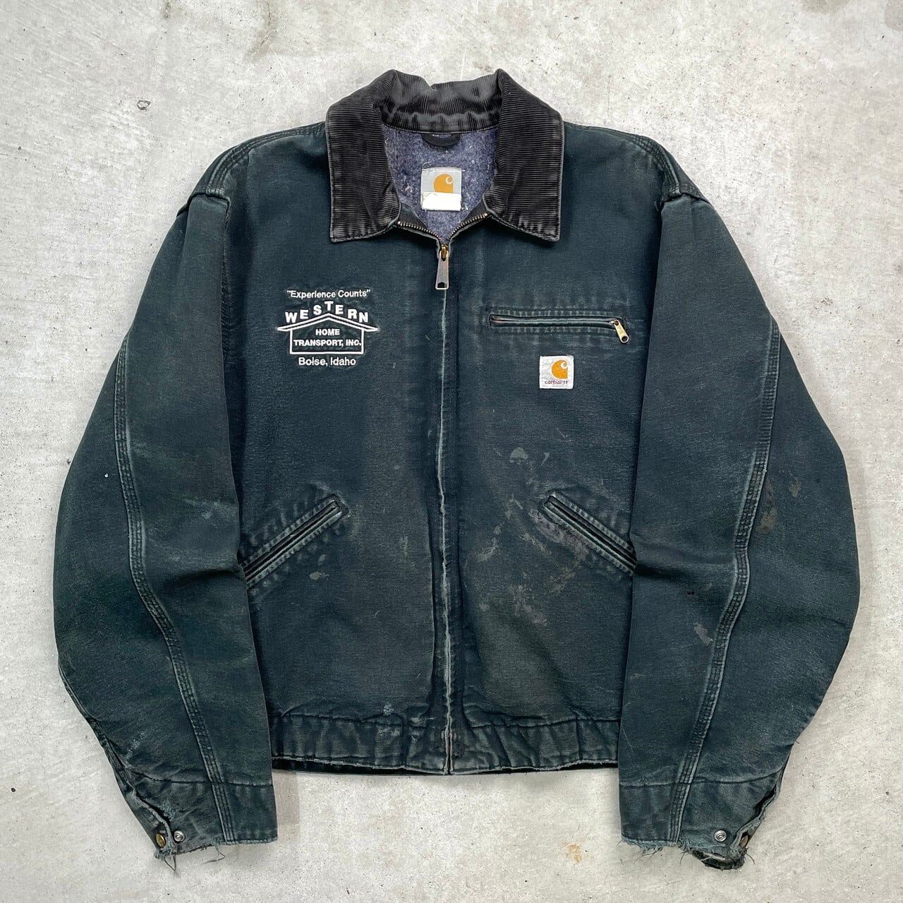 00年代 Carhartt カーハート デトロイトジャケット ダックジャケット メンズL相当 古着 00s ヴィンテージ VINTAGE 企業ロゴ刺繍 ブルゾン ブランケットライナー 雰囲気系 フェードブラック 墨黒 【ワークジャケット】/ブラック