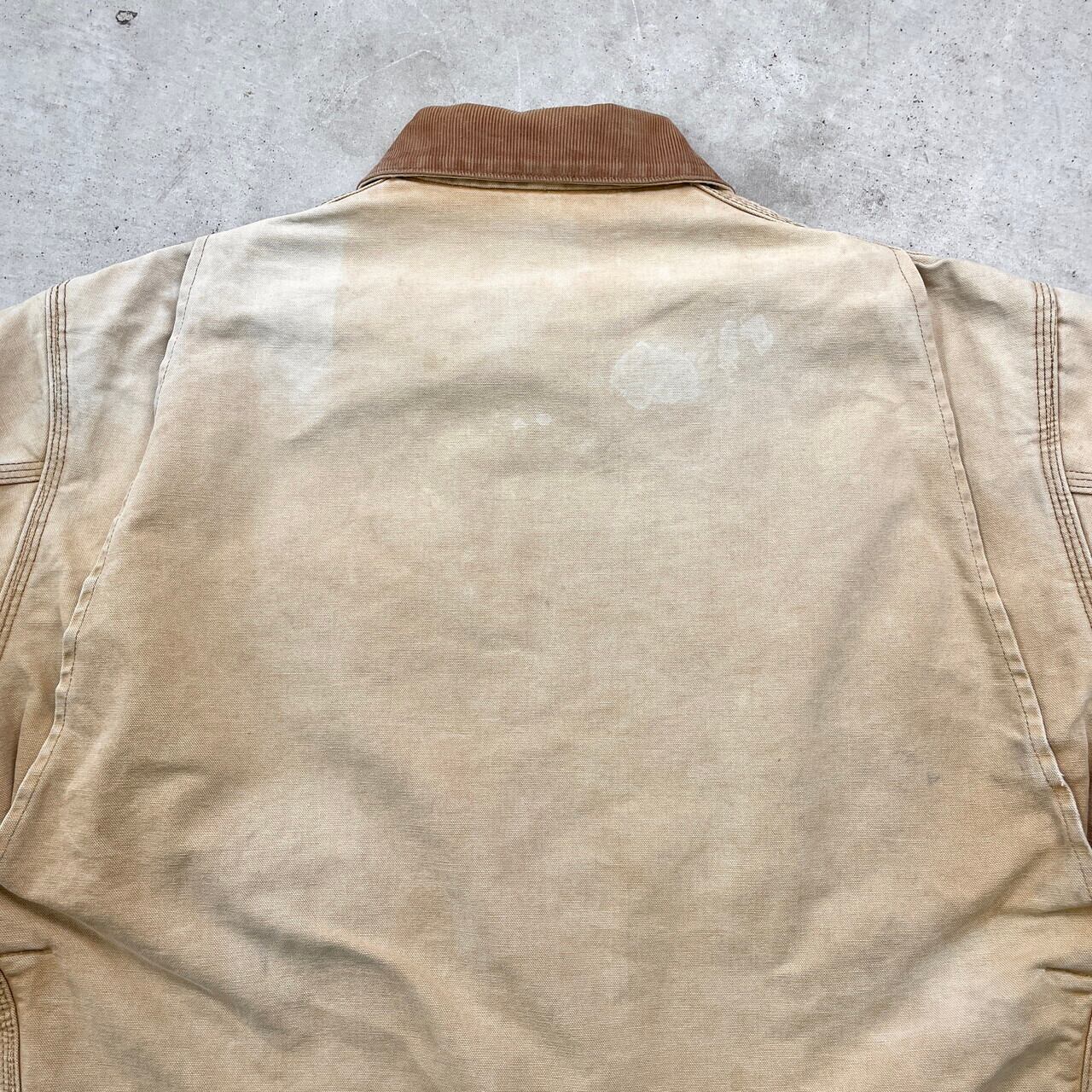 90年代 Carhartt カーハート ダック地 デトロイトジャケット ワークジャケット メンズ2XL相当 古着 90s ヴィンテージ VINTAGE ブルゾン ブランケットライナー フェードベージュ ビッグサイズ 大きいサイズ 【ワークジャケット】/ベージュ