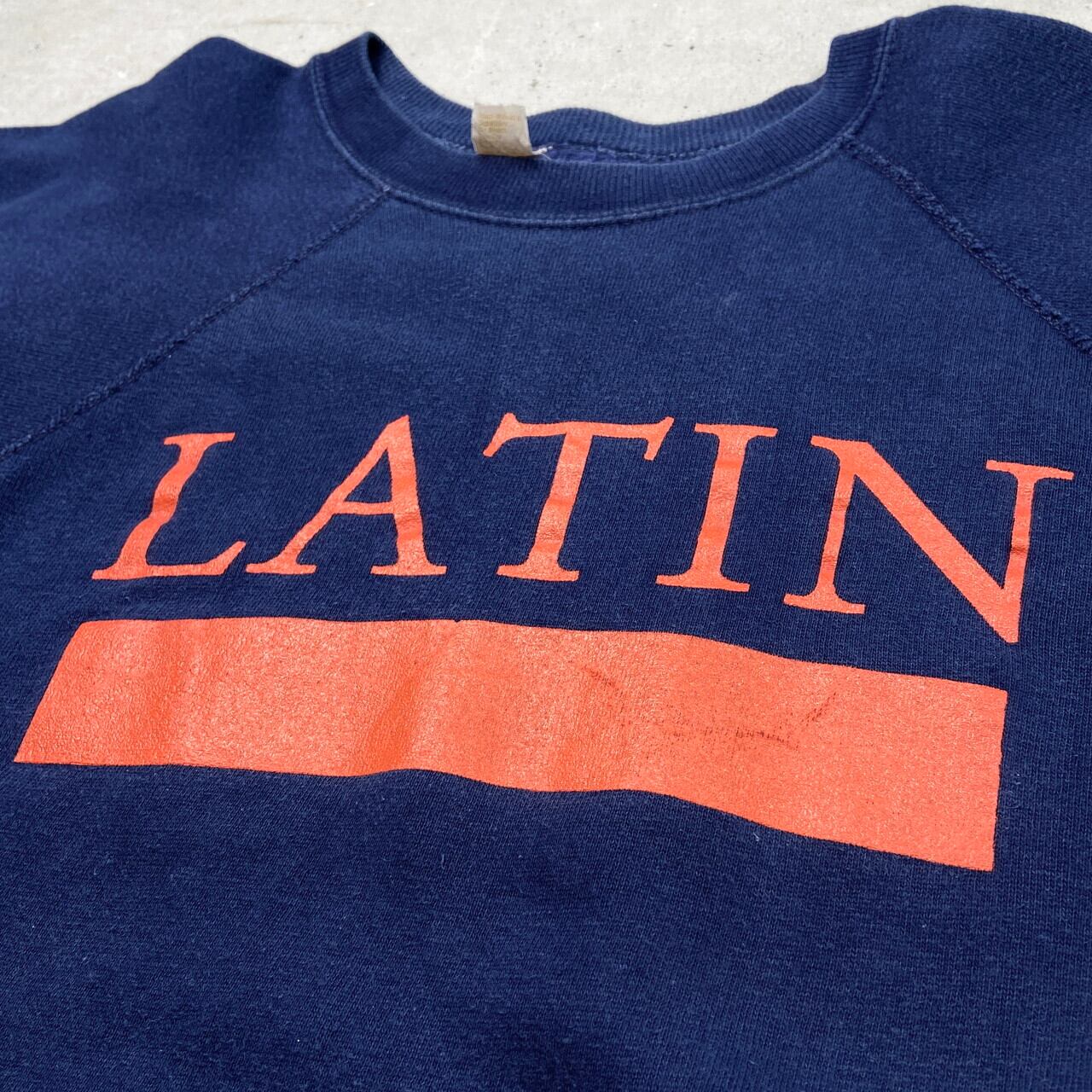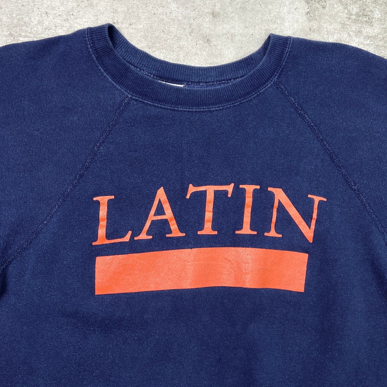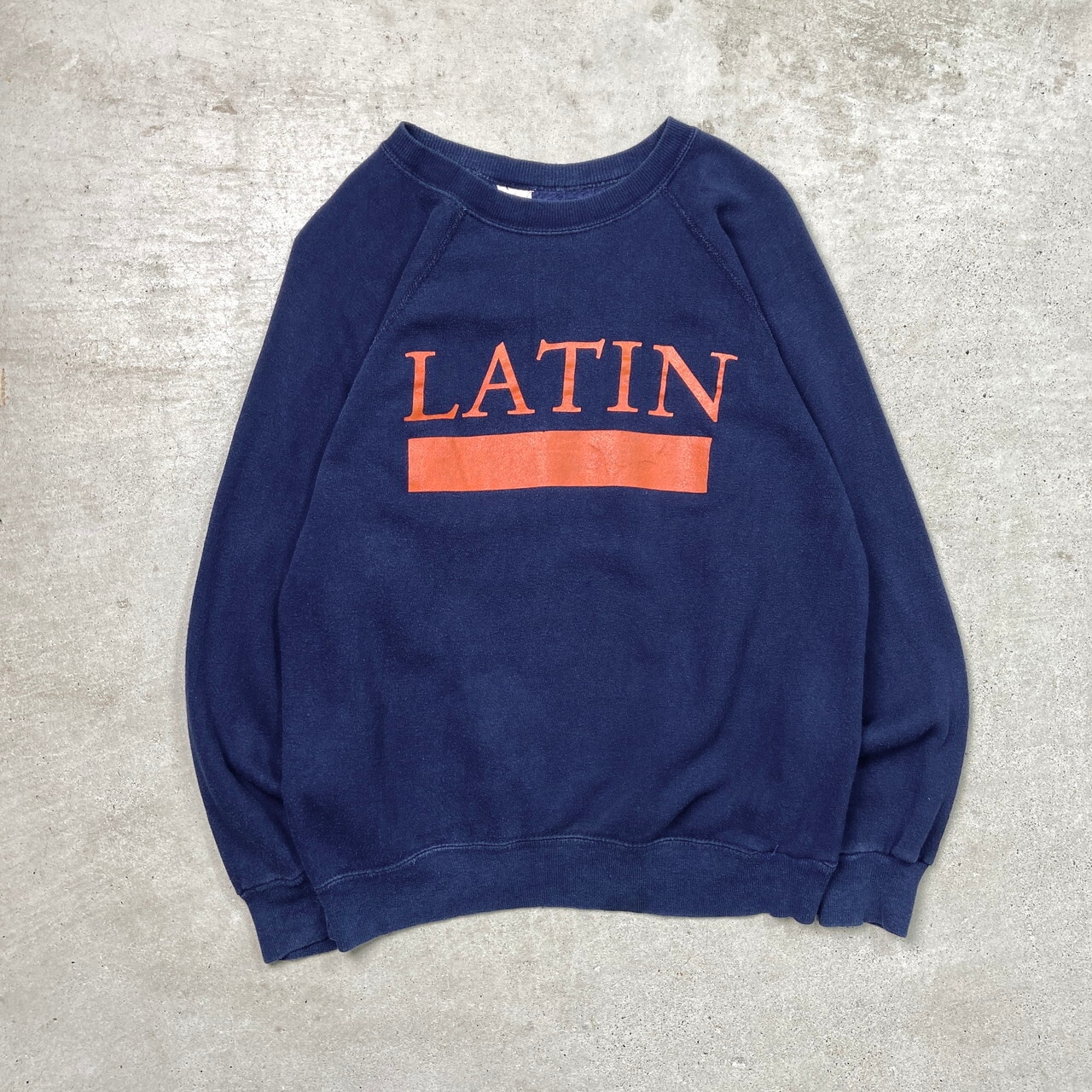 ■80年代 USA製 LATIN ラグランスウェットシャツ カレッジプリント メンズS相当 レディースM相当 古着 80s ヴィンテージ VINTAGE トレーナー 紺色【スウェット】/ネイビー