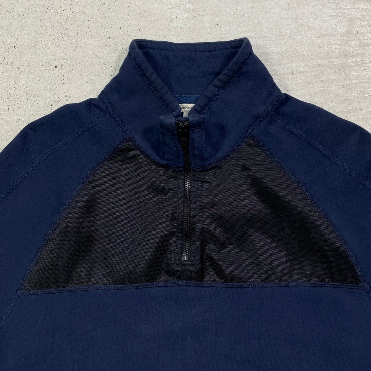 ■Calvin Klein Jeans カルバンクライン ハーフジップスウェットシャツ ナイロン切り替え メンズXL 古着 ハイネック トレーナー 紺色 ブラック 黒【スウェット】/ネイビー
