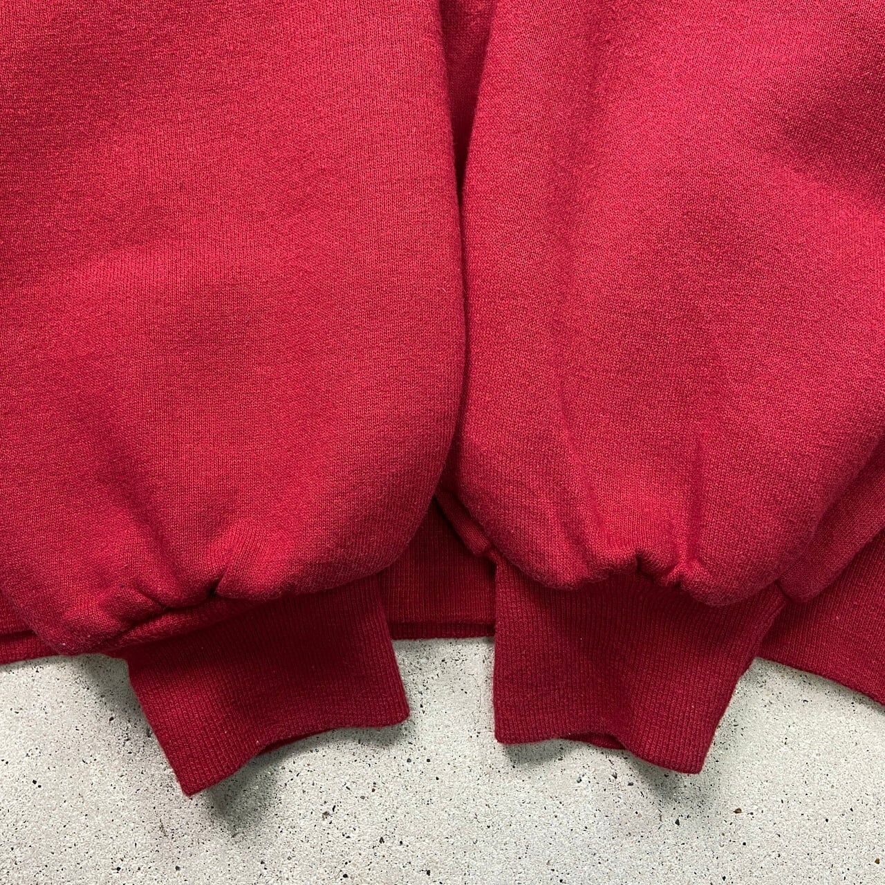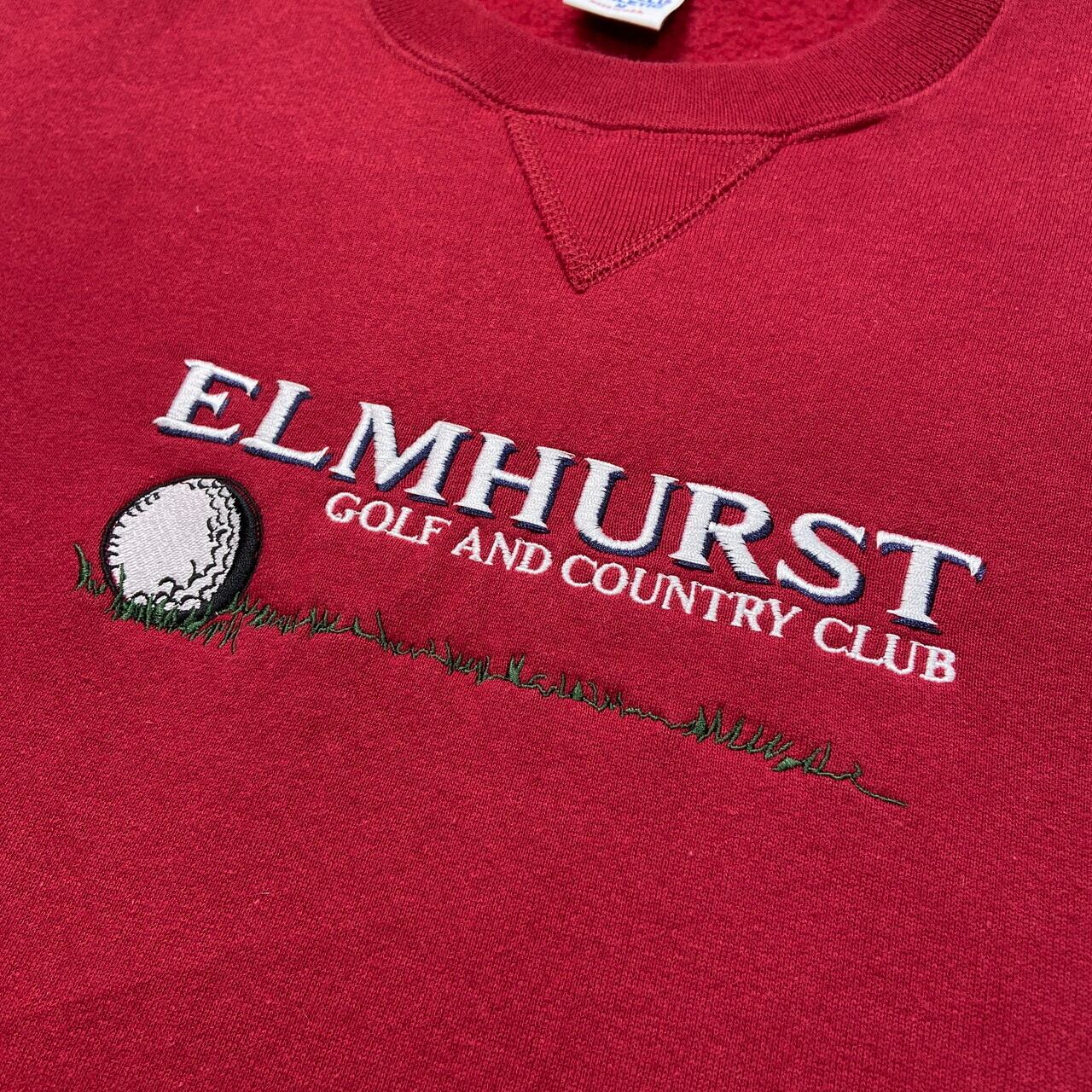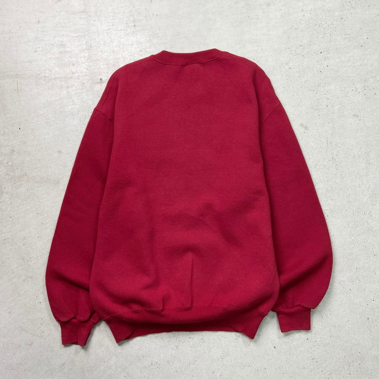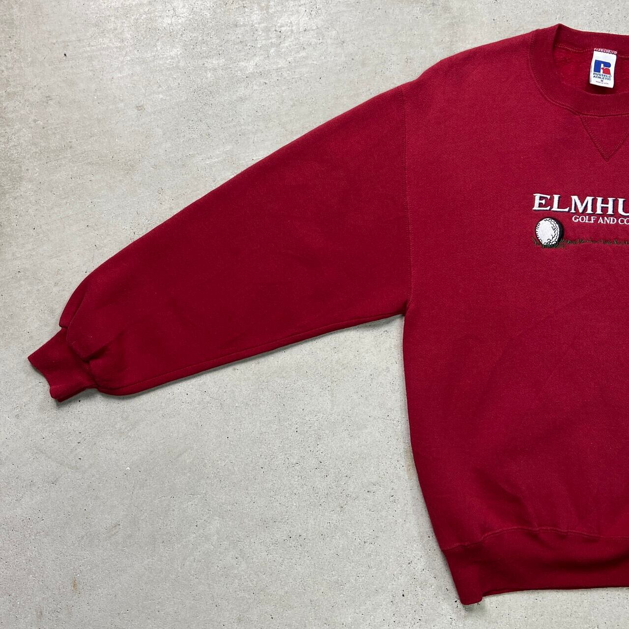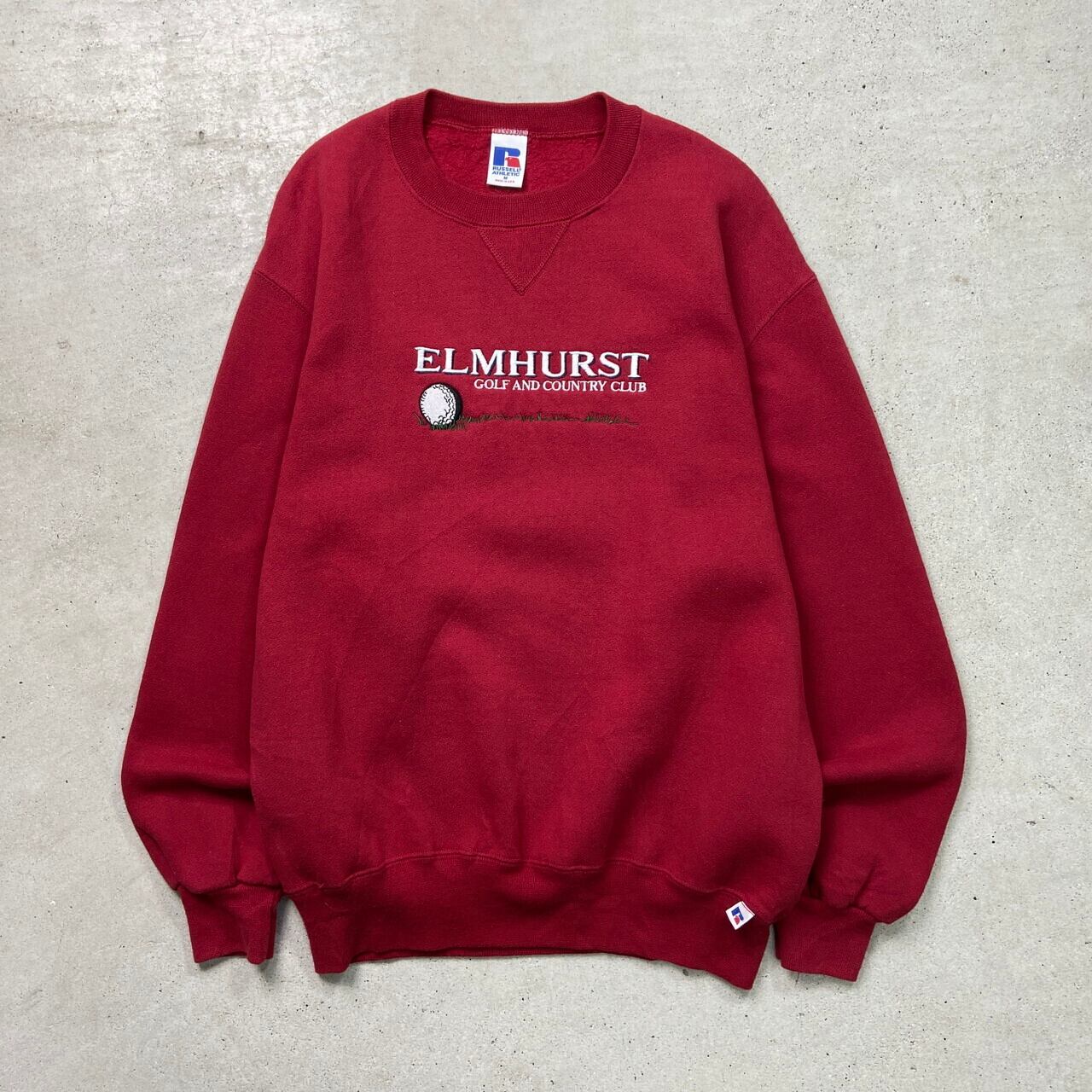 90年代 USA製 RUSSELL ATHLETIC ラッセル ELMHURST 企業ロゴ刺繍 スウェットシャツ メンズL相当 古着 90s ヴィンテージ VINTAGE 前Vガゼット アメカジ トレーナー 刺繍タグ 赤色【スウェット】/レッドSS30